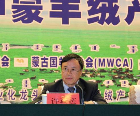 內(nèi)蒙古自治區(qū)農(nóng)牧業(yè)廳副廳長許燕輝首先致辭。他在致辭中講到,中蒙兩國的羊絨產(chǎn)量占世界總產(chǎn)量的90%以上,中蒙羊絨產(chǎn)業(yè)會(huì)議在內(nèi)蒙古召開意義重大,通過多方互動(dòng)交流,就羊絨產(chǎn)情、絨價(jià)等行業(yè)共同關(guān)注情況的交流,對進(jìn)一步增強(qiáng)中蒙羊絨產(chǎn)業(yè)在全球羊絨業(yè)界的權(quán)重,凸顯內(nèi)蒙古自治區(qū)在全球羊絨行業(yè)的影響和作為全球最大羊絨主產(chǎn)區(qū)和加工區(qū)的地位意義重大,對內(nèi)蒙古羊絨產(chǎn)業(yè)持久穩(wěn)定發(fā)展起到不可忽視的推動(dòng)作用。而且內(nèi)蒙古發(fā)展羊絨產(chǎn)業(yè)具有得天獨(dú)厚的優(yōu)勢,第一、我區(qū)在絨山羊品種、羊絨產(chǎn)量、質(zhì)量三方面占絕對優(yōu)勢;第二、我區(qū)在羊絨加工總量大,加工能力強(qiáng);第三、我區(qū)羊絨制品在內(nèi)銷市場和品牌數(shù)量優(yōu)勢明顯;第四、我區(qū)產(chǎn)業(yè)園區(qū)建設(shè)初具規(guī)模。他希望通過這次會(huì)議,可以走出一條中蒙羊絨產(chǎn)業(yè)創(chuàng)新之路。
