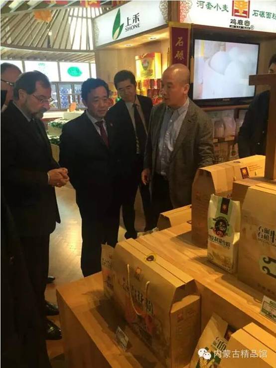 期間屈冬玉副部長與中東歐國家駐華使館大使、外交部和質(zhì)檢總局等代表參觀內(nèi)蒙古精品館。