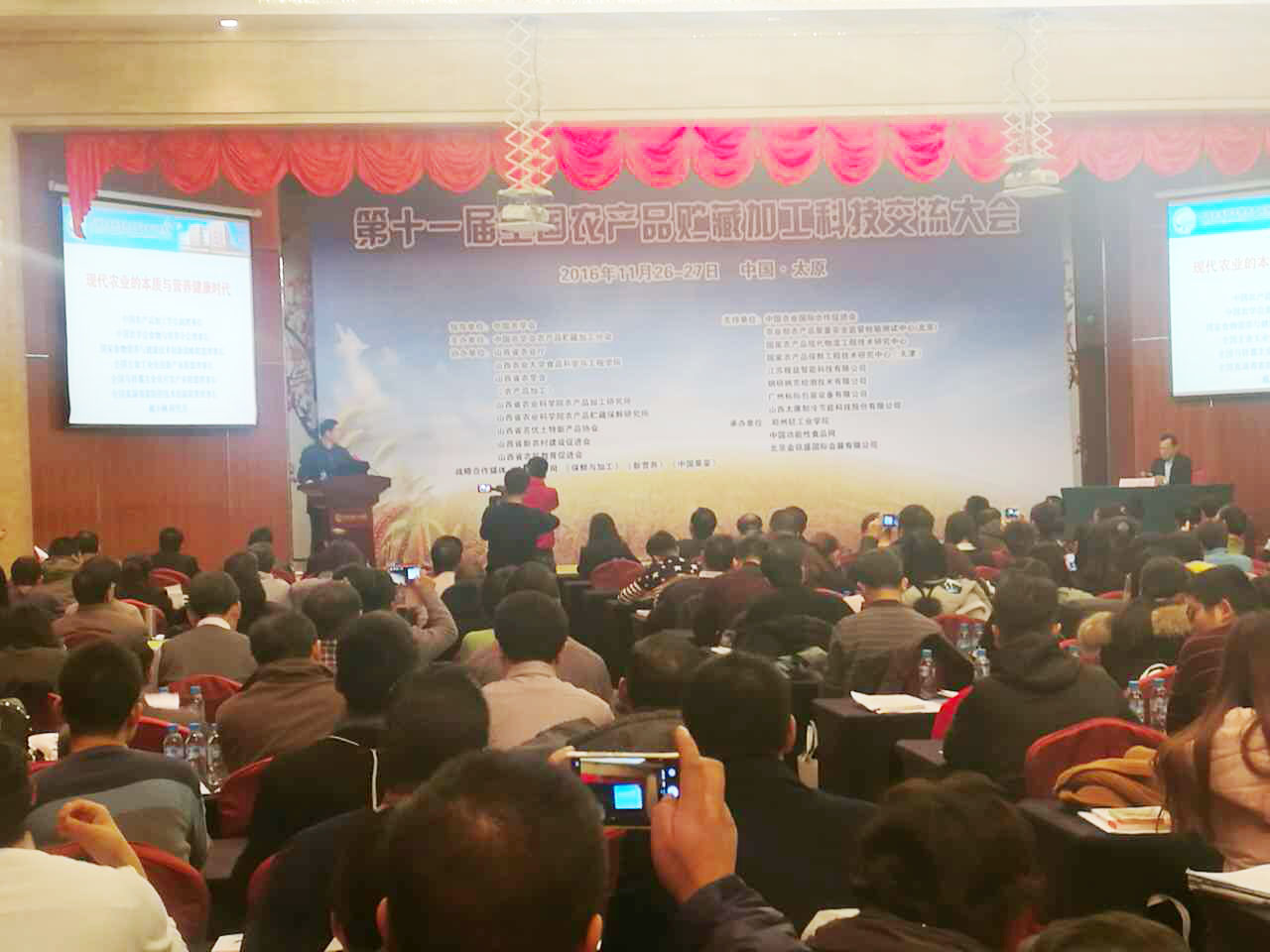 20161125-27日,由中國農(nóng)學會農(nóng)產(chǎn)品儲藏加工分會主辦,山西省農(nóng)業(yè)廳等單位支持,中央電視臺、中國食品報、食品商務(wù)網(wǎng)等支持的第十一屆全國農(nóng)產(chǎn)品儲藏加工科技交流大會在山西太原花園國際大酒店隆重召開。