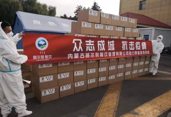 15、常務(wù)理事單位-內(nèi)蒙古額爾敦羊業(yè)股份有限公司:10月12日,額爾敦餐飲管理公司為呼和浩特民族學院的一線工作人員送去60箱價值2.4萬元的生活食品,以實際行動踐行企業(yè)的社會責任和使命擔當。