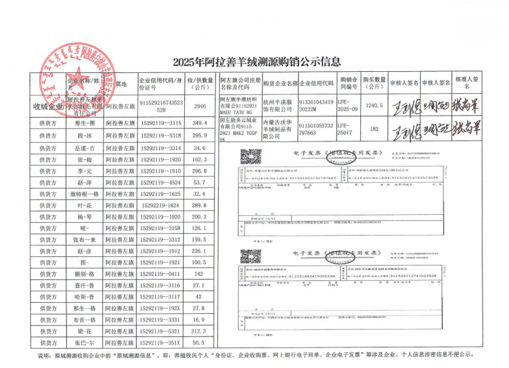 2025年阿拉善羊絨溯源購銷公示信息