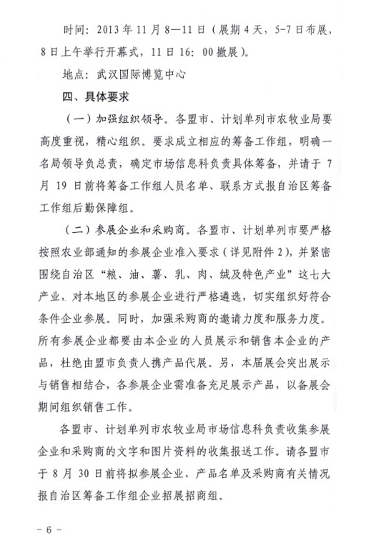 關(guān)于印發(fā)內(nèi)蒙古自治區(qū)參加第十一屆中國(guó)國(guó)際農(nóng)產(chǎn)品交易會(huì)工作方案的通知