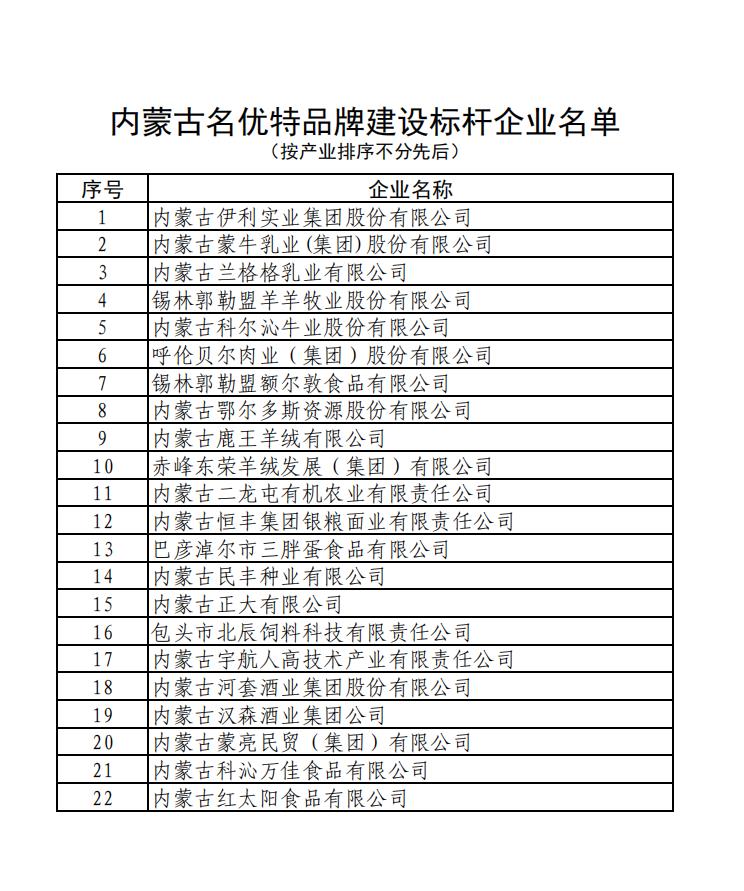 內(nèi)蒙古名優(yōu)特品牌建設(shè)標(biāo)桿企業(yè)名單公示