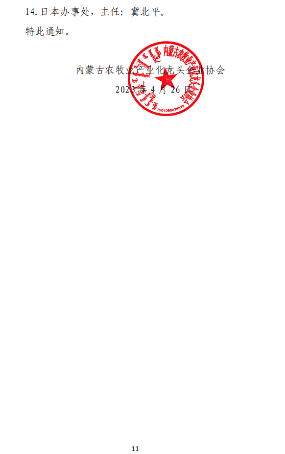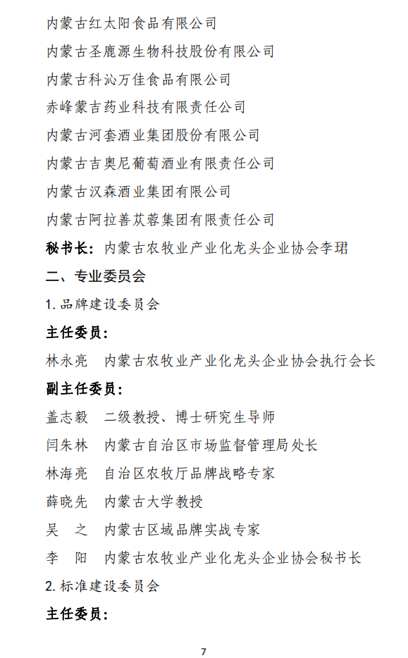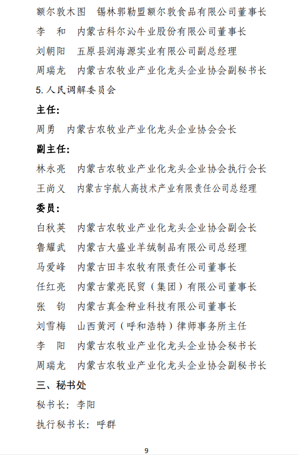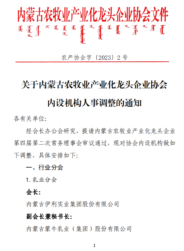 關于內蒙古農(nóng)牧業(yè)產(chǎn)業(yè)化龍頭企業(yè)協(xié)會內設機構人事調整的通知