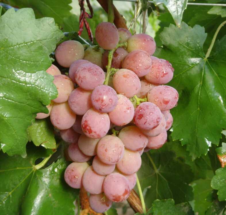 失富羅莎:別名早紅提,由日本引進。平均穗質(zhì)量650g,果實長橢圓形,平均粒質(zhì)量912g,果皮紅色或紫紅色,果肉較軟多汁,味甜,含糖17%~18%,不易脫粒。